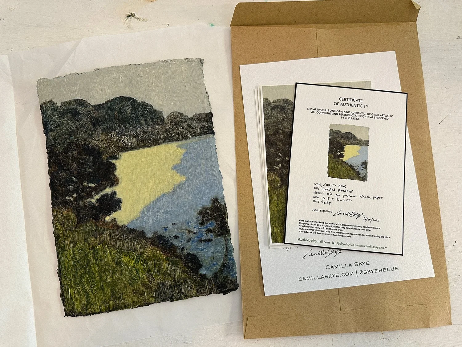 All works are included a unique certificate of authenticity with contact details and care instructions.